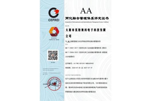 近日,我公司正式獲得兩化融合管理體系A(chǔ)A級評定證書,標(biāo)志著在信息化與工業(yè)化融合方面取得顯著進(jìn)展。此次評定嚴(yán)格按照國家標(biāo)準(zhǔn),歷經(jīng)多個環(huán)節(jié),最終順利達(dá)標(biāo)。